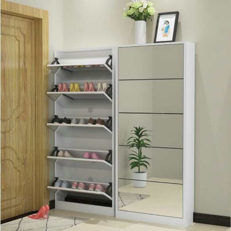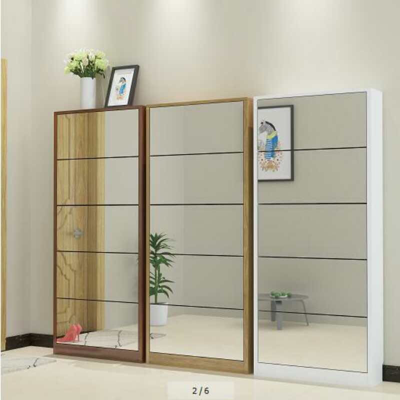 this is melamine board with mirror decorated surface single or double rack shoes cabinet for living room.