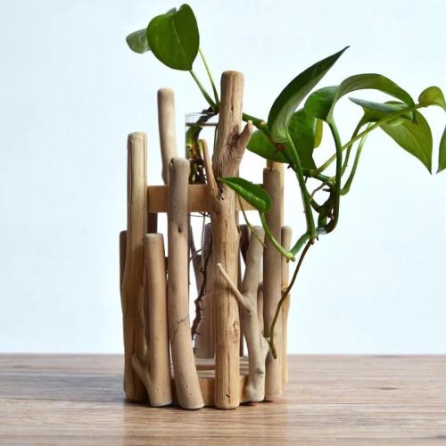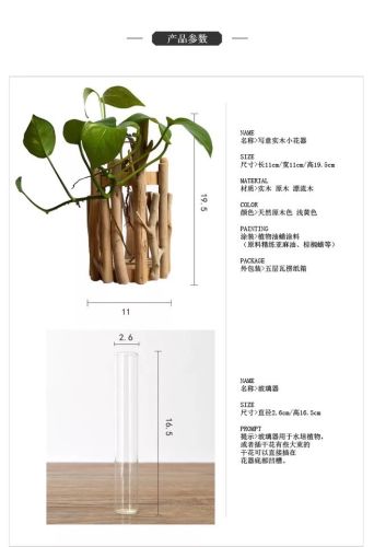 Pure hand-made wooden flower pot decoration hydroponic flower creative vase flowers solid wood pastoral decoration