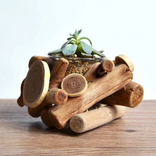 Pure handmade wooden candlestick flowerpot landscape decoration solid wood flower creative mini meat pot decoration