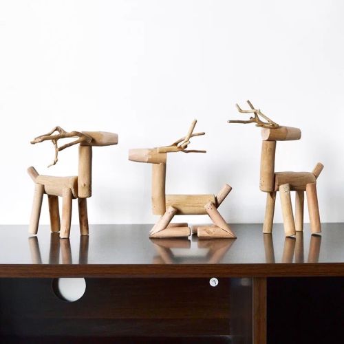 Pure handmade wood crafts deer home decorations wine cooler TV cabinet creative Fawn ornaments