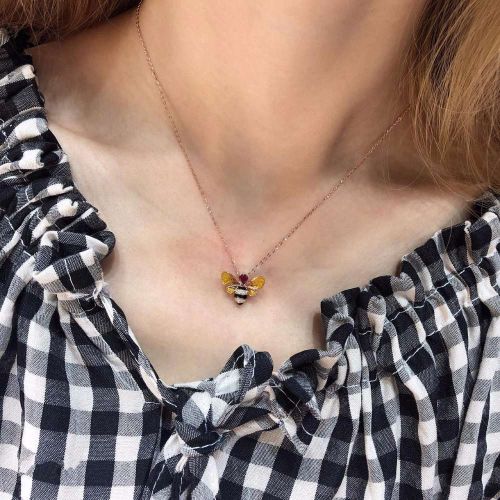 Small bee ruby necklace Chain length 18cm Three adjustment buckles 16 17 18 Can be used as clavicle chain or sweater chain Ring earrings have three sets
