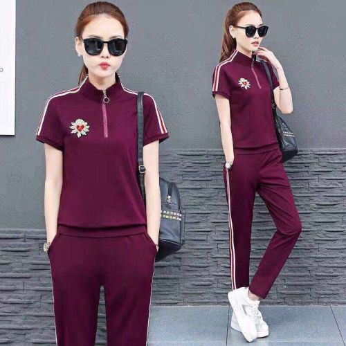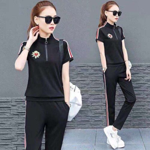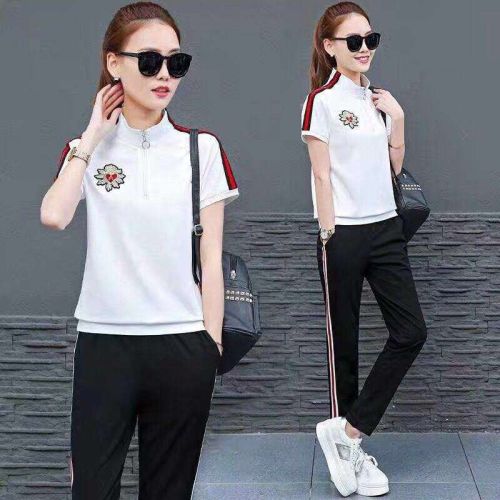 Mobile/Wechat/Whatsapp: s8618826127118 Sanskrit Leisure Sports Set Women's Summer Dress Korean Edition 2019 Women's Slim Pants Sportswear Summer Short Sleeve strap Two-piece Set Tide