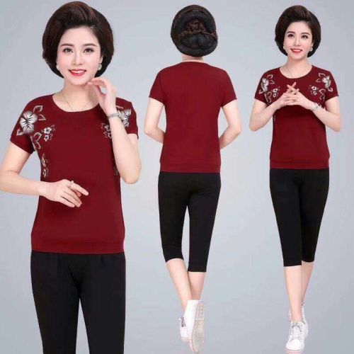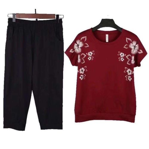 Mobile/Wechat/Whatsapp: s8618826127118 Sanskrit 2019 new short-sleeved seven-piece pants mom casual sports summer set