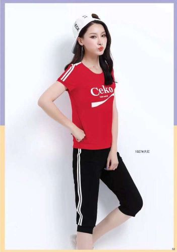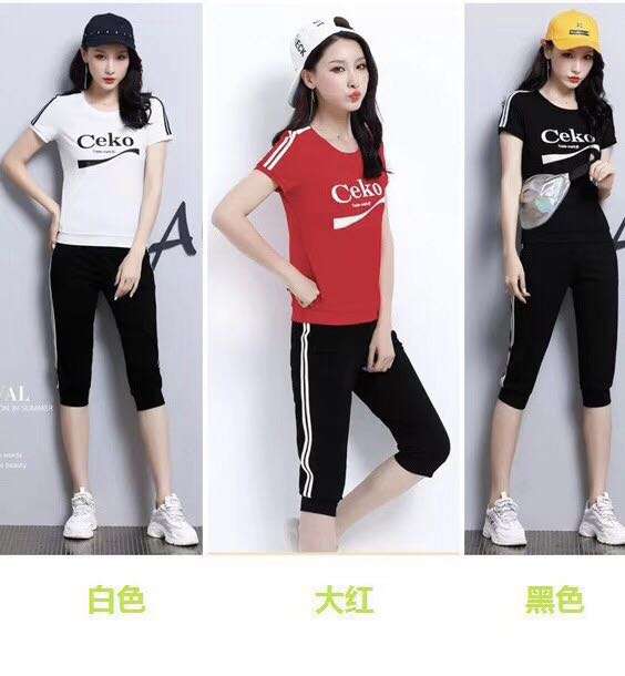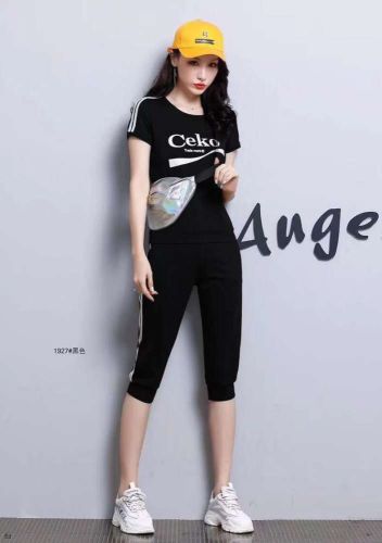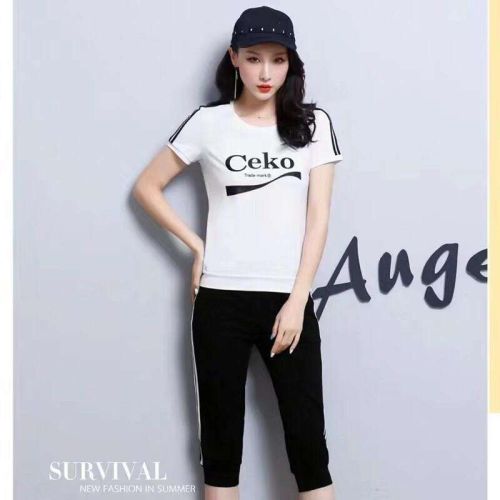 Mobile/Wechat/Whatsapp: s8618826127118 Sanskrit Korean version of women's new off-the-shoulder short-sleeved top sports set seven-point pants casual fitness Audell cotton two-piece set
