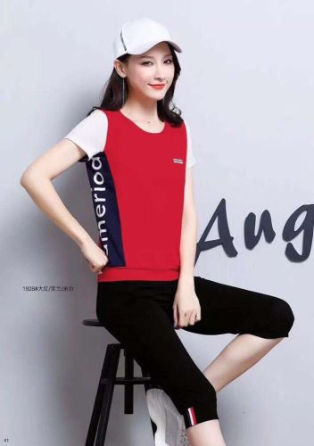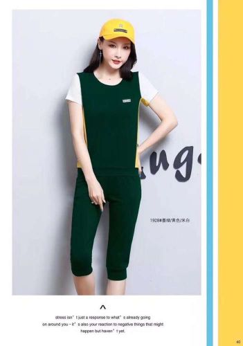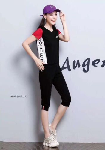 Mobile/Wechat/Whatsapp: s8618826127118 Sanskrit Sports Wear Ladies summer new Korean version of fashion slim short sleeves seven-piece pants casual wear two-piece set tide