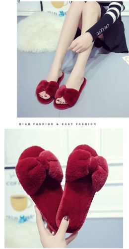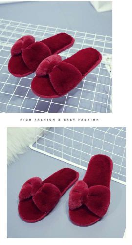 Casual plush cotton slippers one-line straps simple solid color fur slippers female flat bottom anti-skid indoor floor tow