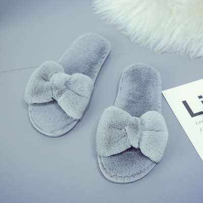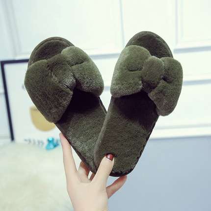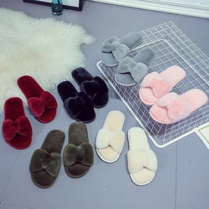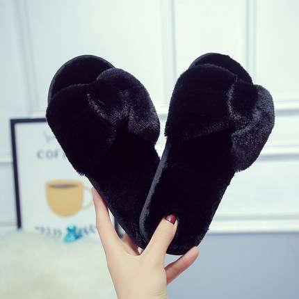 Casual plush cotton slippers one-line straps simple solid color fur slippers female flat bottom anti-skid indoor floor tow