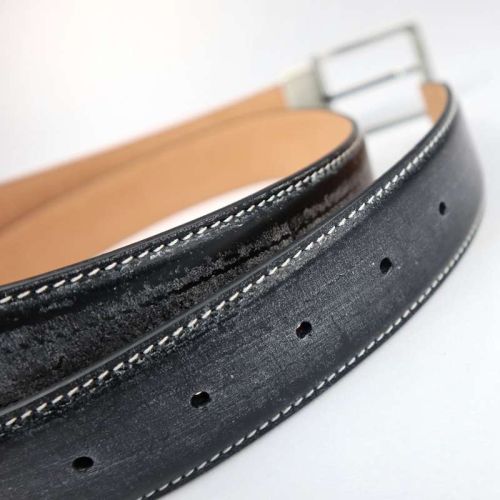 The white substance on the surface of the belt is the wax of the bridle leather itself,