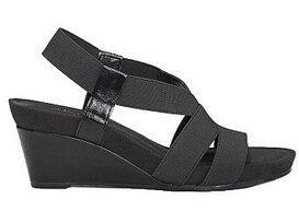 Comfortable Black Faux Leather and Elastic Wedge Sandals