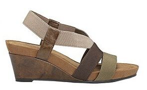 Fashionable Tan Faux Leather and Elastic Wedge Sandals