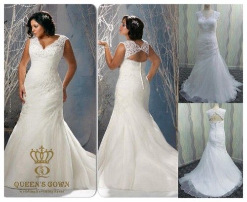 Plus Size White Cap Sleeves Lace Beading Wedding Dresses