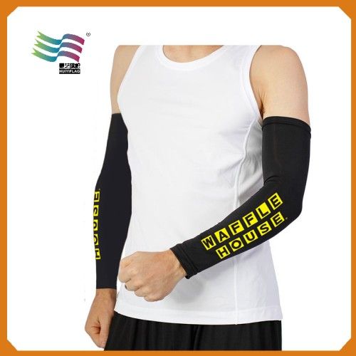 A pair ofadvertsing sports gift elastic fabric arm sleeves with a lightweight with polyester construction ,featuring gripper elastic to keep sleeves securely in the combination of performance and comfort.It's reallly be worthy for wearing ,it's the best gift for sport fans.