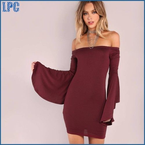 Deep red cotton Tight-fitting Long sleeve tube dress for ladies party