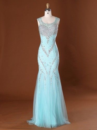 O-Neck Zipper See Through Evening Dress (EDZ16)