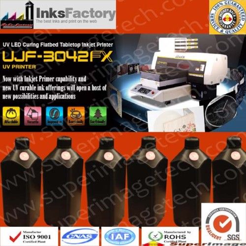 Printers Compatibility: Mimaki UJF-3042FX Aliases: Mimaki UJF-3042FX UV Curable Inks. UV Curable Ink for Mimaki UJF-3042FX Mimaki LH-100 UV-Curable Inks; LH-100 UV-Curable ink for Mimaki UJF-3042FX, Mimaki UJF-3042FX UV Curable Inks, Mimaki LF-140 UV Curable Inks, Mimaki LF-200 UV Curable Inks, UV Curable Ink for Mimaki UJF-3042FX, LH-100 UV-Curable ink for Mimaki UJF-3042FX, LF-140 UV-Curable inks for Mimaki Mimaki UJF-3042FX, LF-200 UV-Curable Ink for Mimaki UJF-3042FX Package: 1000ml/bottle, UV Curable Inks/LED UV curable inks. Brand Name: SuperImage Origial of Certification: Made In China Country of Origin Main Raw Materials: Japan & USA; USA; USA Main Colors: Cyan, Magenta, Yellow, Black, Light Cyan, Light Magenta. Other Colors: White, Primer(PR100), Cleaning flush for option. Work under LED UV lamp, LED Lamp, LED UV dryer, or other LED UV equipment, or Cold light source, etc. No odor, Really environmental-friendly, and safe inks. 'Touch dry' technologies adopted, with quick dry speed, and high fluency.gh fluency. Applicable Print Media: Mainly for Glass, Wood, Acrylic, Porcelain, Ceramic tile, covers, Mobile Covers, Metal, Plastic, KT Board, Marble, Stone, Foam, PVC, etc. Also for some banner, cloth, vinyl, wraps, flex, PVC, etc roll media need to printed by UV. Since UV inks dry immediately when exposed to UV light, no drying time is required. This dramatically improves work efficiency for the user. 'LUS-150' ink which employs white and is designed for wide media applications is also available. White ink is ideal for use in window graphics and with other clear substrates.substrates. The new UV ink type 'LUS-200' ensures outdoor durability. The flexibility of 200% enables installing on curved surfaces such as vehicle wraps.icle wraps. Environmentally-friendly UV printing generates little VOCs. Curing is performed with a power-saving and long-lasting LED UV lamp. Environmentally friendly technology: UV LED offers decisive energy savings, longer diode lifetime and a close to no VOC* emitting printing environment. * VOC = Volatile Organic Compounds Certifications & Standards:dards:ards: Top quality, Wide applicability, with RoHS standard & EN71 Safety Certification.ation.tion. No odor, Really enironmental-friendly Mimak UJF-3042FX LED UV Curable Inks, ISO9001-9002 Standard Main Points: 1). Excellent outdoor warranty, more than 36 months; 2). Excellent color saturation; 3). Precision filtration warrants clogging-free operation. 4). Several color matching sets producing accurate colors and wide gamut. 5). Faster drying giving improved productivity. 6). Safe resin and additives materials and water solvent for a better environment. 7). More light smell, mostly no odor. 8). Main Resin, Photoinitiators, colorants, additives material brand: CIBA 9). High stability and No Color distortion. 10). Good scratch-resistance, and firmness onto the prints 11). Low energy consumption, save printing cost. 12). Consistent quality & reputation.tion.tion. Quality Warranty: SuperImage affords full quality warranty for our inks products. For any inferior quality products or loss caused by inferior quality inks, SuperImage will be responsible for products-changing, returning and replacements delivery, as well as related compensation.