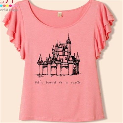 Fashion cotton simple pattern falbala short-sleeved ladies' t-shirt