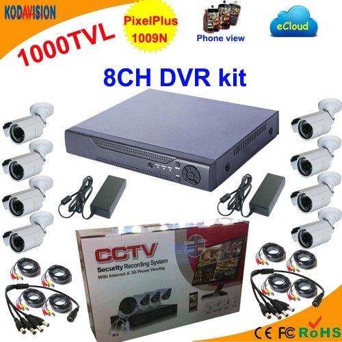 8 Channel DVR Kit with CMOS 1000tvl Bullet Camera