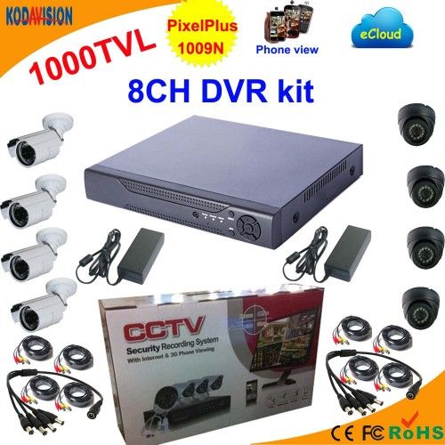 8CH Standalone DVR kit with CMOS 1000TVL camera