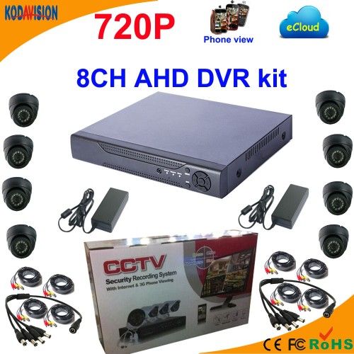 8 channel AHD DVR kit with 720P dome camera