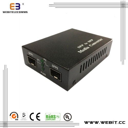 This converter has two SFP interfaces. It can converts various fiber digital signals between SFP modules of different wavelength, distance, mode(single / multi-mode,UTP/ fiber) under the two same signal rate, including Ethernet, ATM, SDH and monitor signal. Such as the converter of 1310/1550nm, 1490/1550nm. It adopts high rate convert circuit and high quality IC chips, high stability and performance, can be widely used in all kinds of fiber digital transmission.