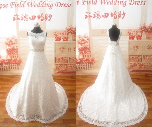 New Beads Belt Lace Wedding Dress (SL108)