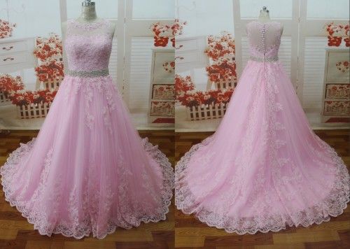 Lace Pink Zipper Sleeveless Crystal Backless Evening Dress SL152