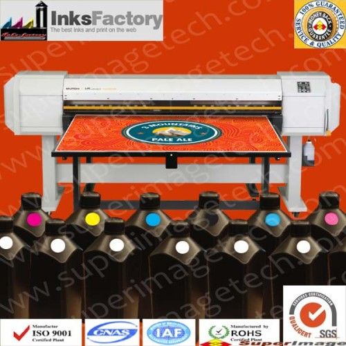 Printers Compatibility: Mutoh ValueJet-1626UH Mutoh VJ1626UH 64' UV-LED Printersinters Aliases: Mutoh VJ1626UH UV-LED UV curable ink, UV-LED UV Curable Ink for Mutoh ValueJet-1626UH Package: 1000ml/bottle, UF-LED UV Curable Inks/LED UV curable inks. Brand Name: SuperImage Origial of Certification: Made In China Country of Origin Main Raw Materials: Japan & USA; USA; USA Main Colors: UV-LED UV Curable Inks CMYK + White + Varnish CMYK + White + Varnish, plus Cleaning flush Work under LED UV lamp, LED Lamp, LED UV dryer, or other LED UV equipment, or Cold light source, etc. No odor, Really environmental-friendly, and safe inks. 'Touch dry' technologies adopted, with quick dry speed, and high fluency.gh fluency. Applicable Print Media: Mainly for hard materilas, alike Glass, Wood, Acrylic, Porcelain, Ceramic tile, covers, Mobile Covers, Metal, Plastic, KT Board, Marble, Stone, Foam, PVC, etc. Also for some flexible materials banner, leather, soft glass, plastic, cloth, vinyl, wraps, flex, PVC, etc roll media need to printed by UV. Certifications & Standards:dards:ards: Top quality, Wide applicability, with RoHS standard & EN71 Safety Certification.ation.tion. No odor, Really enironmental-friendly Mutoh VJ1626UH LED UV Curable Inks, ISO9001-9002 Standard Main Points: 1). Excellent outdoor warranty, more than 36 months; 2). Excellent color saturation; 3). Precision filtration warrants clogging-free operation. 4). Several color matching sets producing accurate colors and wide gamut. 5). Faster drying giving improved productivity. 6). Safe resin and additives materials and water solvent for a better environment. 7). More light smell, mostly no odor. 8). Main Resin, Photoinitiators, colorants, additives material brand: CIBA 9). High stability and No Color distortion. 10). Good scratch-resistance, and firmness onto the prints 11). Low energy consumption, save printing cost. 12). Consistent quality & reputation.tion.tion. Print MethodVariable DOT, Drop-On Demand Piezo Drive Method Number of Nozzles(180 nozzles X 8 lines) X 1 Head InkUV-LED / 220ml or 820ml Variable dotYes Minimum droplet size3.7 pl Print Mode1440/1080/720/540/360 dpi: 6 Modes+ Color optionsCMYK, White + Varnish Head HeightPrint up to. 5 inches Maximum Media Width64'"" By using our UV-LED UV curable inks, specially White and varnish ink, Mutoh VJ1626UH can print white for added applications on a variety of substrates and add layers of varnish for added texture and embossing. By using SuperImage UV-LED UV curable inks, The VJ 1626UH is small in size so it fits easily onto a table or desk, perfect for any print shop. Environmentally friendly. SuperImage UV-LED ink is an energy efficient solution to printing, and Mutoh's UV- LED ink is 100% solid, meaning no VOCs or HAPs. By using SuperImage UV-LED UV Curable Inks, Mutoh's ValueJet 1626UH 64' large format, UV-LED, printer is the perfect fit for any print shop looking to expand its applications and enter the world of UV printing.inting. By using SuperImage UV-LED UV Curable Inks, as the most affordable UV-LED hybrid printer on the market, The new ValueJet 1626UH - 64' printer not only gives you the ability to print on rigid substrates, it also gives you the flexibility to print on roll media as well. Its dual function and multiple application design saves you valuable floor space and is ideal for printing packaging prototypes, POP displays, indoor signage.ignage. Quality Warranty: SuperImage affords full quality warranty for our inks products. For any inferior quality products or loss caused by inferior quality inks, SuperImage will be responsible for products-changing, returning and replacements delivery, as well as related compensation.