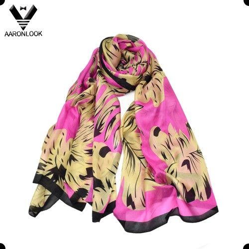 Women′s High Fashion No MOQ Retail Leaf Print Silk Fabric Scarf