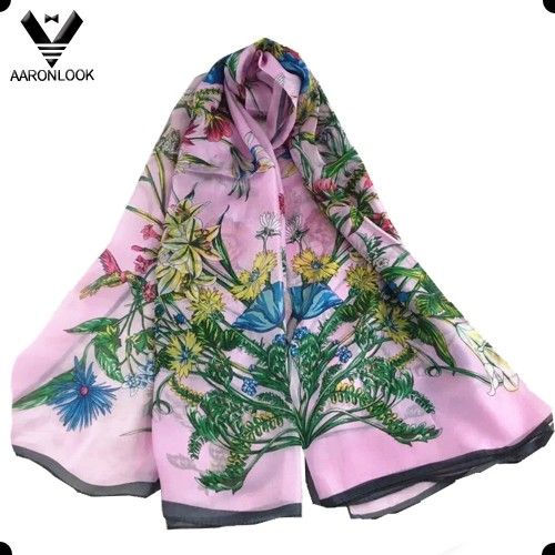 Women′s Wholesale Beautiful Flower Plant Print Silk Satin Scarf