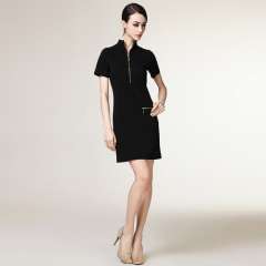 经典黑色与拉链修身风格正式女装设计办公室连衣裙