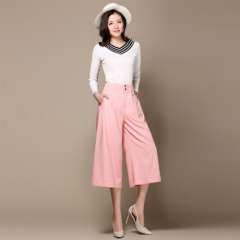 女士夏季宽松直身腰裤宽腿裤裁剪裤供应商广州