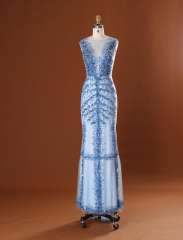 串珠无袖背心贴V领晚礼服(EDZ26)