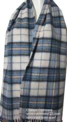 100%软羊毛象牙蓝色格子编织围巾