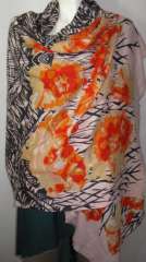 100%羊毛Heringbone披肩打印Na橙