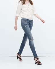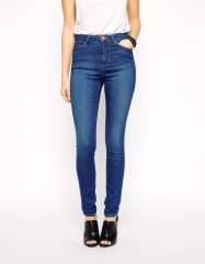 时尚女人MID上升紧身牛仔布牛仔裤