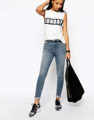 高品质时尚软翻领紧身女人牛仔裤
