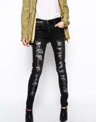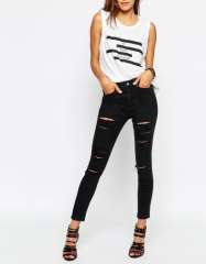 批发新时尚Ripped瘦女人牛仔裤