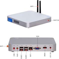 无风扇设计迷你电脑,1 * VGA,1 * HDMI,1 * RJ45,6 * USB