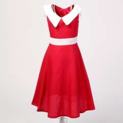 批发复古制造商彼得潘领红色减肥舞会礼服