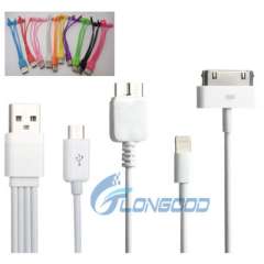 4合1线缆(多功能微型5针USB 2.0 / 3.0 + 30针充电线+闪电8针同步线),适用于iPhone 5和5c和5s,iPhone 4和4s,iPad