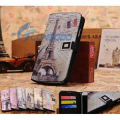 经典复古水平翻转按钮皮套与信用卡插槽和持有三星Galaxy S4 / I9500