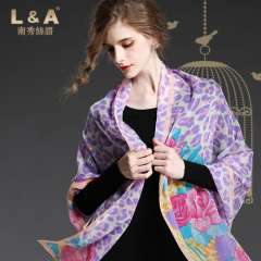 紫色豹纹打印丝绸乔其纱长围巾披肩