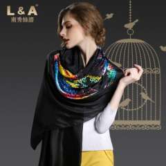 黑色性感女士数码印花真丝围巾披肩