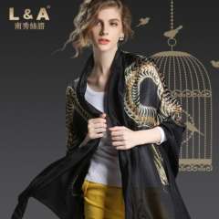 中国金龙纹丝绸围巾黑色围巾