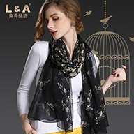 丝绸雪纺双围巾女士围巾黑色花印花Sp20-2