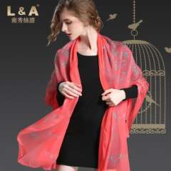 丝绸雪纺双围巾梅红色印花女士围巾Sp20-1