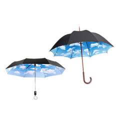 23英寸双层蓝天打印木弯曲手柄直伞