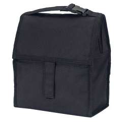 黑色冷却袋,聚酯,带前拉链口袋,使您的标志,保持食物新鲜