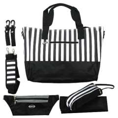 尿布袋时尚妈妈,黑色/白色,优质棉帆布13口袋