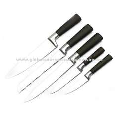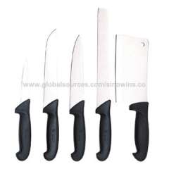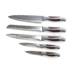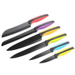 不粘涂层的五颜六色的不锈钢厨刀集合